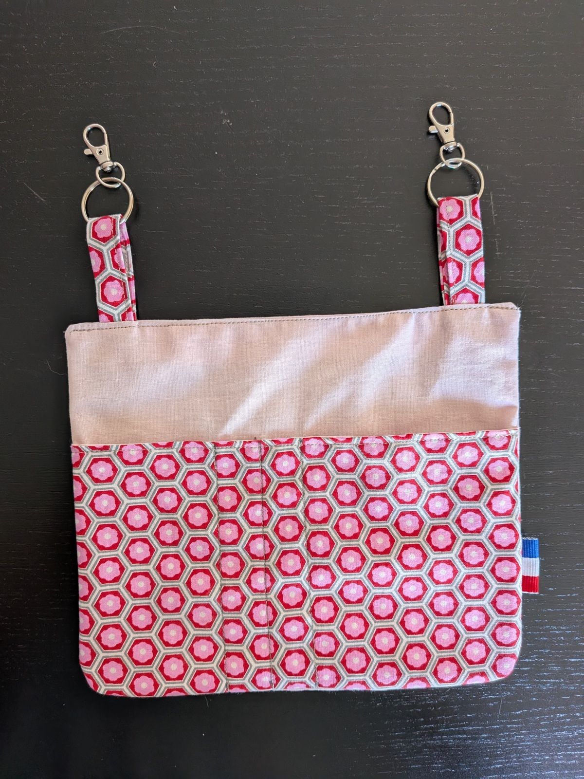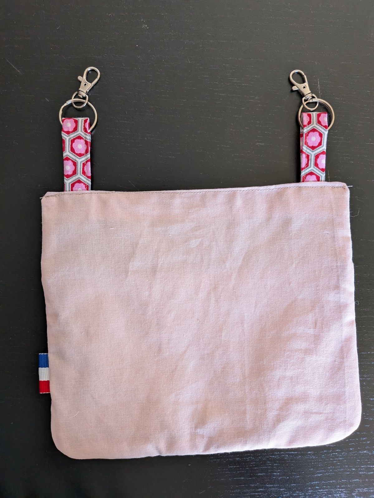 Et puis je l'ai trouvée tellement bien que j'ai décliné cette pochette en plusieurs versions, améliorées, puisque j'ai masqué les coutures au verso: