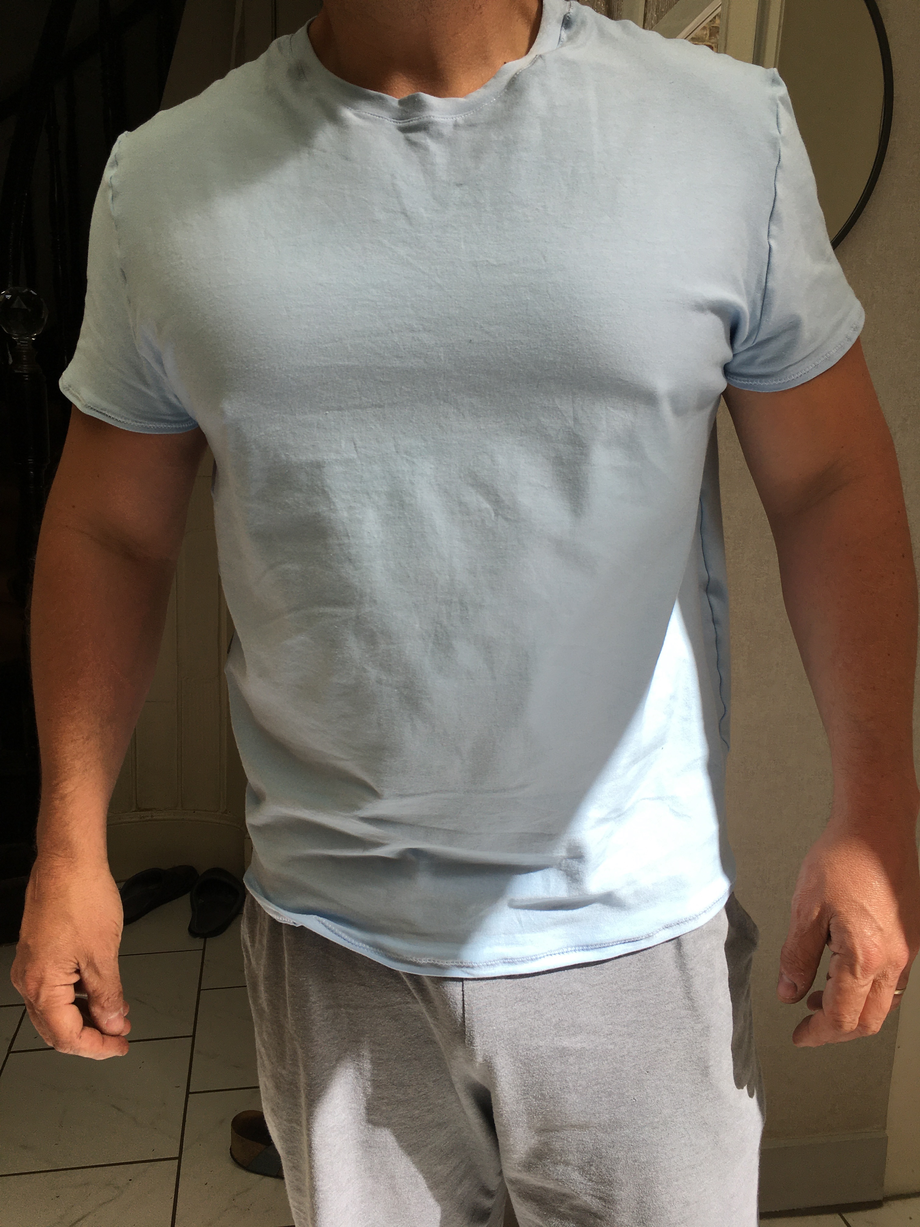 Évidemment, le premier T.shirt cousu avec la surjeteuse était pour mon chéri...