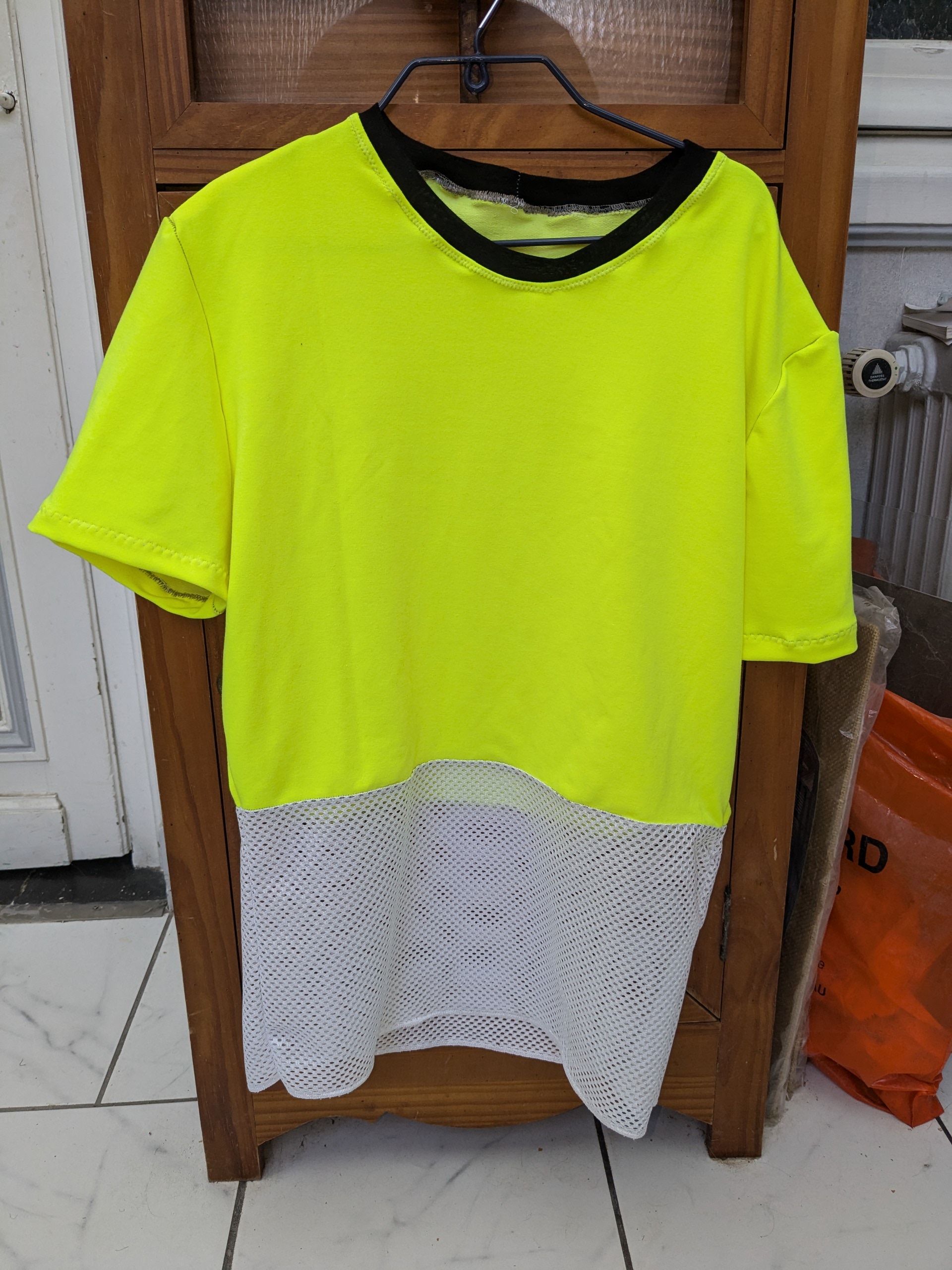 Et puis à Emmaüs de St-Nazaire, j'ai trouvé un coupon de jersey coton jaune fluo, pour la modique somme de 2€.
