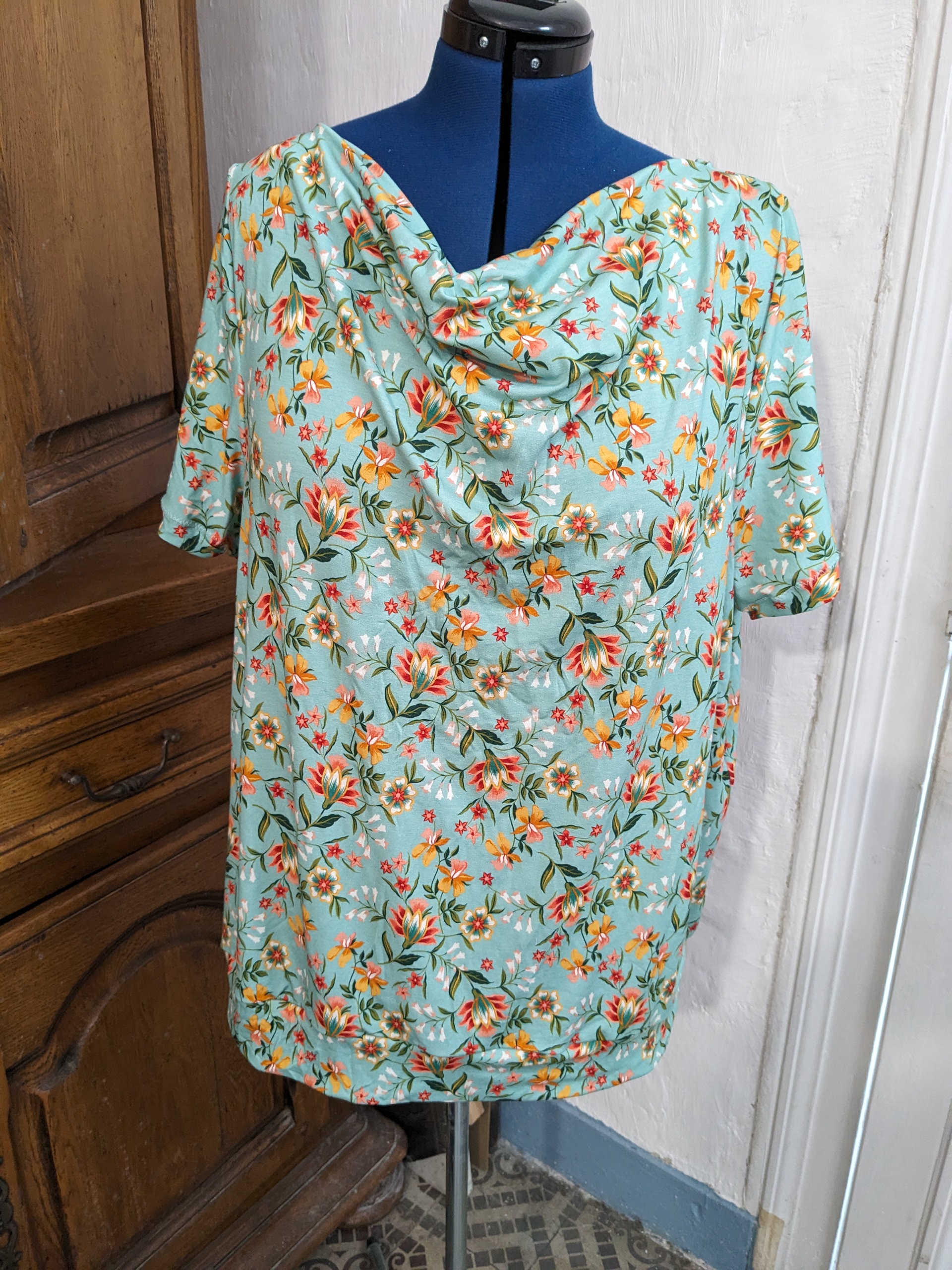 Je suis tellement bien dans mon sweat à col bénitier que j'en ai cousu un autre, dans un jersey plus léger, plus fluide: